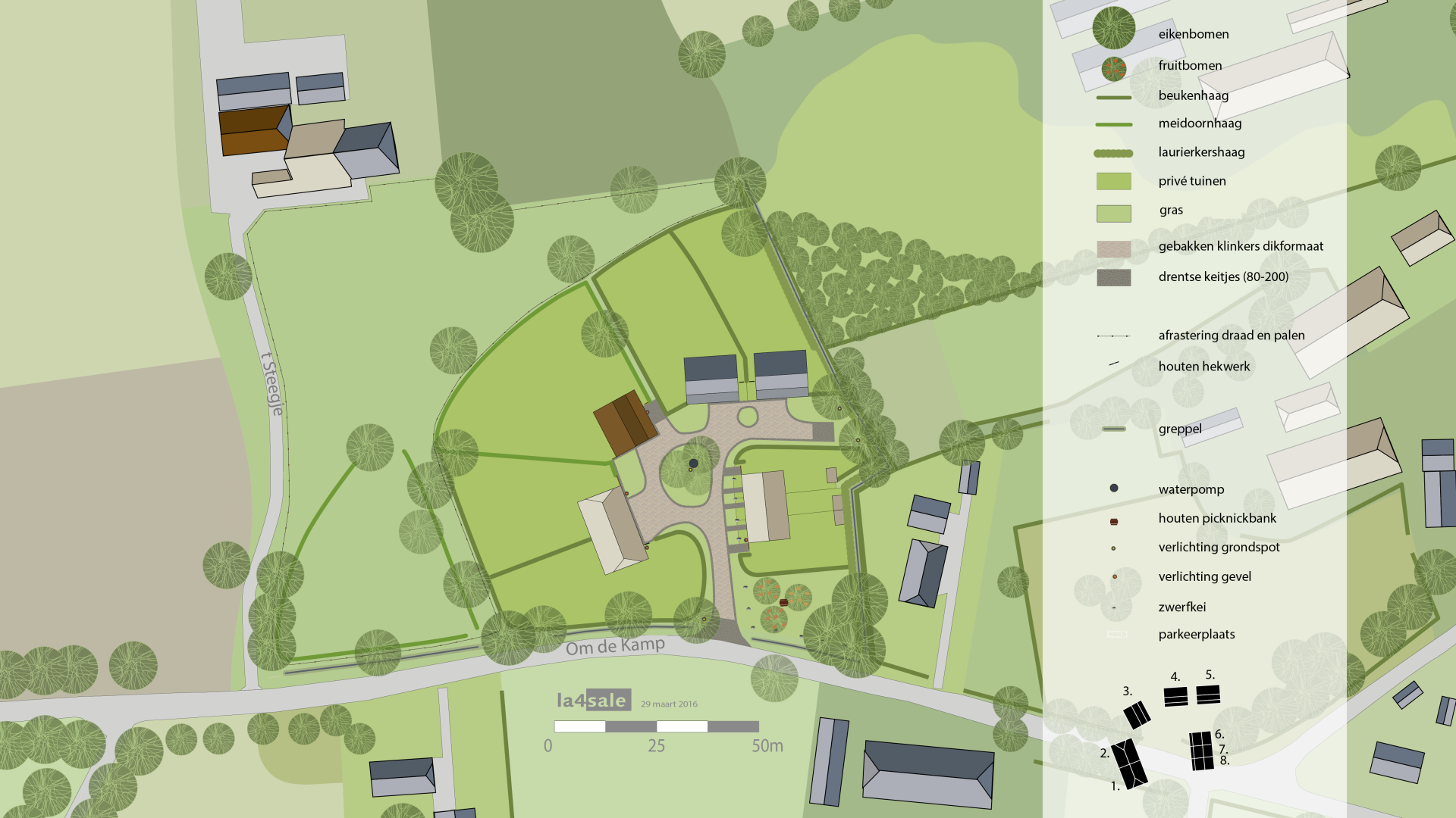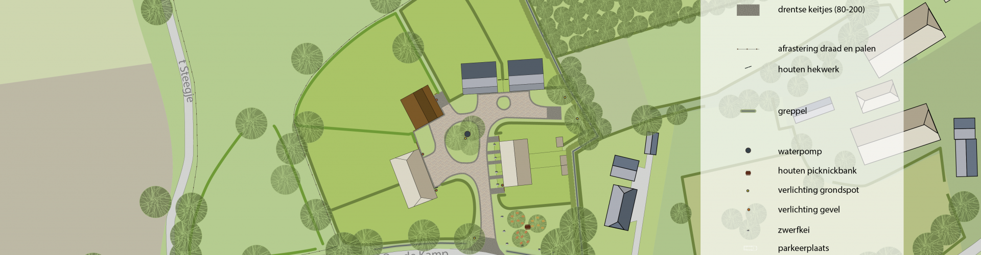 Als inspiratie voor dit nieuwe erf en de woningen heeft het oorspronkelijke Drentse erf gediend: een intensief benut stukje land met daarop een boerderij en enkele bijgebouwen, gelegen in een groene, landelijke omgeving. Samen vormden zij een praktisch geheel gelegen aan de voet van de es; de meest vruchtbare akker bij de boerderij.